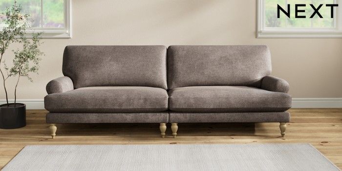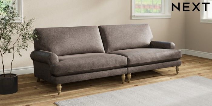 7.2.10 Erin Deep Relaxed Sit 4 Seater Large Sofa Plush Chenille Mink Brown High Classic Turned - Light | Made Click here to use our website with more accessibility support, for example screen readers
