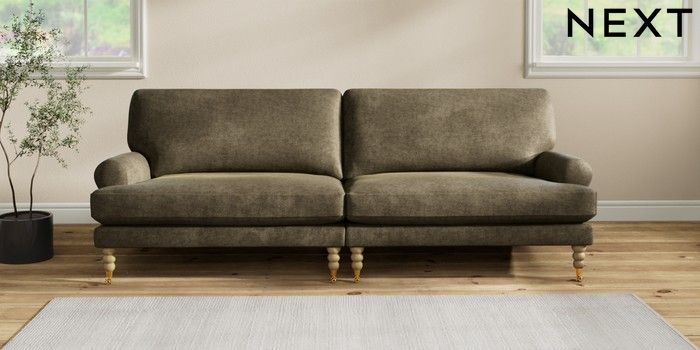 7.2.10 Erin Deep Relaxed Sit 4 Seater Large Sofa Plush Chenille Moss Green High Classic Turned Brass Castor - Light | Made Click here to use our website with more accessibility support, for example screen readers