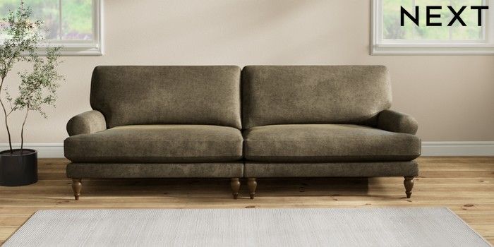 7.2.10 Erin Deep Relaxed Sit 4 Seater Large Sofa Plush Chenille Moss Green High Classic Turned - Mid | Made Click here to use our website with more accessibility support, for example screen readers