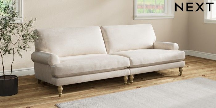 7.2.10 Erin Deep Relaxed Sit 4 Seater Large Sofa Plush Chenille Oyster High Classic Turned - Light | Made Click here to use our website with more accessibility support, for example screen readers