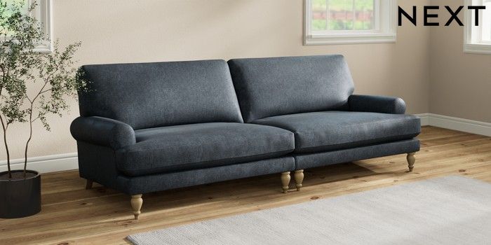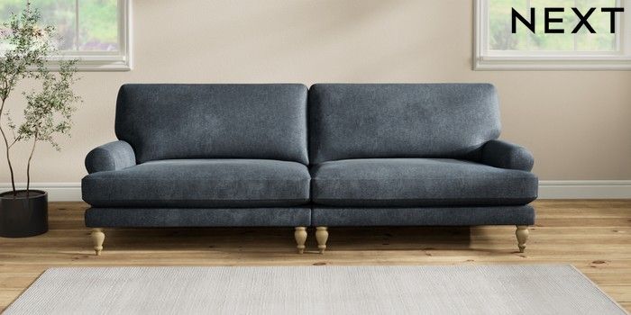 7.2.10 Erin Deep Relaxed Sit 4 Seater Large Sofa Plush Chenille Slate Blue High Classic Turned - Light | Made Click here to use our website with more accessibility support, for example screen readers