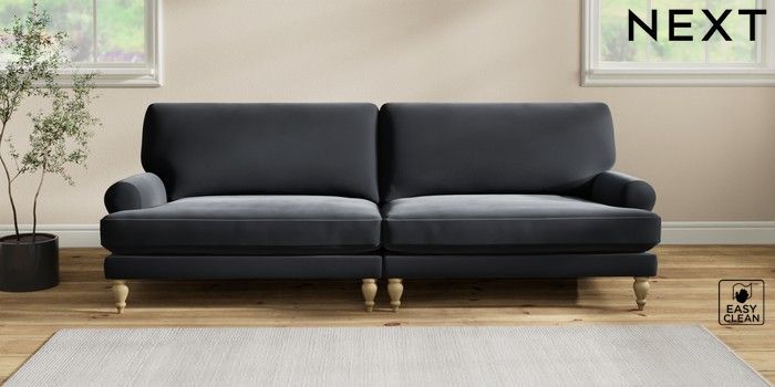 7.2.10 Erin Deep Relaxed Sit 4 Seater Large Sofa Plush Velvet Easy Clean Charcoal Grey High Classic Turned - Light | Made Click here to use our website with more accessibility support, for example screen readers