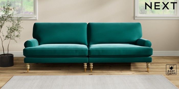 7.2.10 Erin Deep Relaxed Sit 4 Seater Large Sofa Plush Velvet Easy Clean Juniper Green High Classic Turned Brass Castor - Light | Made Click here to use our website with more accessibility support, for example screen readers