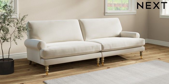 7.2.10 Erin Deep Relaxed Sit 4 Seater Large Sofa Relaxed Linen Look Oyster High Classic Turned Brass Castor - Light | Made Click here to use our website with more accessibility support, for example screen readers