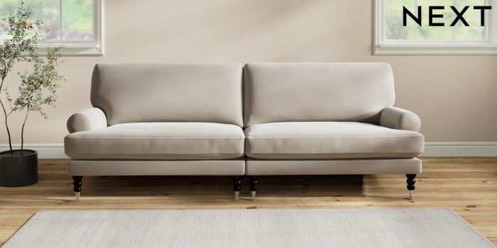 7.2.10 Erin Deep Relaxed Sit 4 Seater Large Sofa Ripple Chenille Light Natural High Classic Turned Chrome Castor - Dark | Made Click here to use our website with more accessibility support, for example screen readers