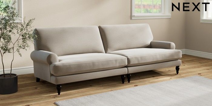 7.2.10 Erin Deep Relaxed Sit 4 Seater Large Sofa Ripple Chenille Light Natural High Classic Turned - Dark | Made Click here to use our website with more accessibility support, for example screen readers
