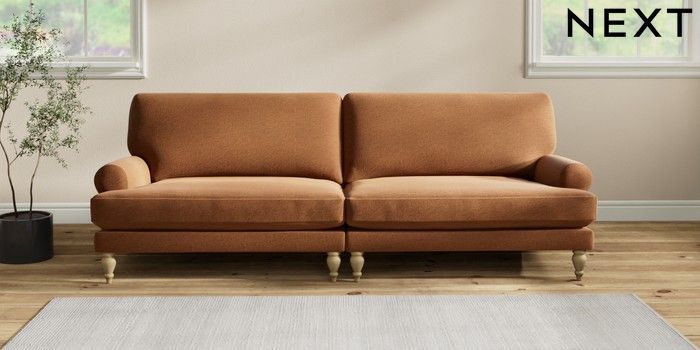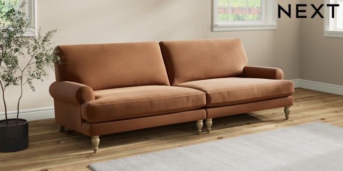 7.2.10 Erin Deep Relaxed Sit 4 Seater Large Sofa Ripple Chenille Mid Rust Brown High Classic Turned - Light | Made Click here to use our website with more accessibility support, for example screen readers