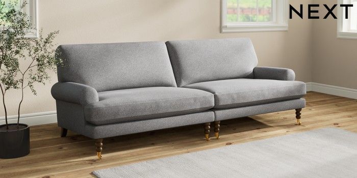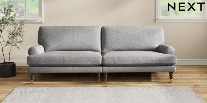 7.2.10 Erin Deep Relaxed Sit 4 Seater Large Sofa Studio Chenille Mid Grey High Classic Turned Brass Castor - Mid | Made Click here to use our website with more accessibility support, for example screen readers