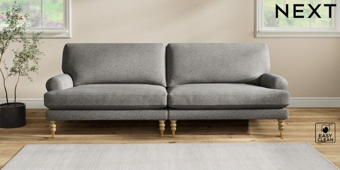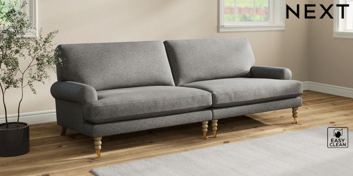 7.2.10 Erin Deep Relaxed Sit 4 Seater Large Sofa Tweedy Blend Easy Clean Dark Grey High Classic Turned Brass Castor - Light | Made Click here to use our website with more accessibility support, for example screen readers