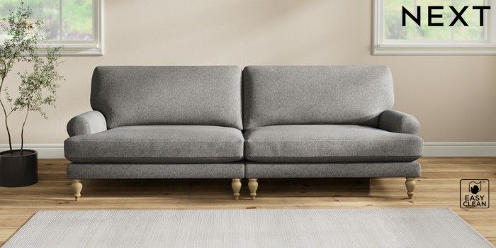 7.2.10 Erin Deep Relaxed Sit 4 Seater Large Sofa Tweedy Blend Easy Clean Dark Grey High Classic Turned - Light | Made Click here to use our website with more accessibility support, for example screen readers