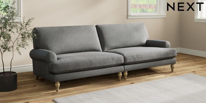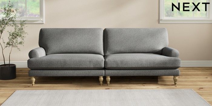 7.2.10 Erin Deep Relaxed Sit 4 Seater Large Sofa Tweedy Chenille Dark Grey High Classic Turned - Light | Made Click here to use our website with more accessibility support, for example screen readers