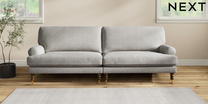 7.2.10 Erin Deep Relaxed Sit 4 Seater Large Sofa Tweedy Chenille Mid Grey High Classic Turned Brass Castor - Mid | Made Click here to use our website with more accessibility support, for example screen readers