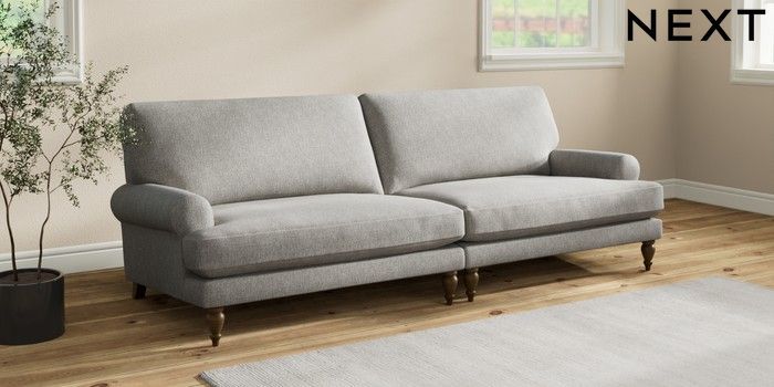 7.2.10 Erin Deep Relaxed Sit 4 Seater Large Sofa Tweedy Chenille Mid Grey High Classic Turned - Mid | Made Click here to use our website with more accessibility support, for example screen readers