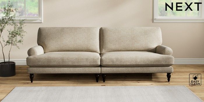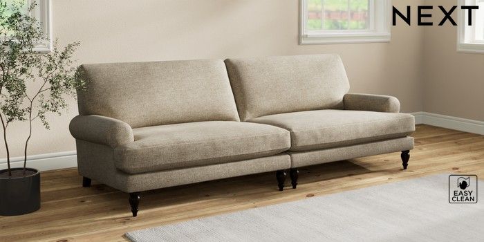7.2.10 Erin Deep Relaxed Sit 4 Seater Large Sofa Woven Chenille Easy Clean Mid Natural High Classic Turned - Dark | Made Click here to use our website with more accessibility support, for example screen readers