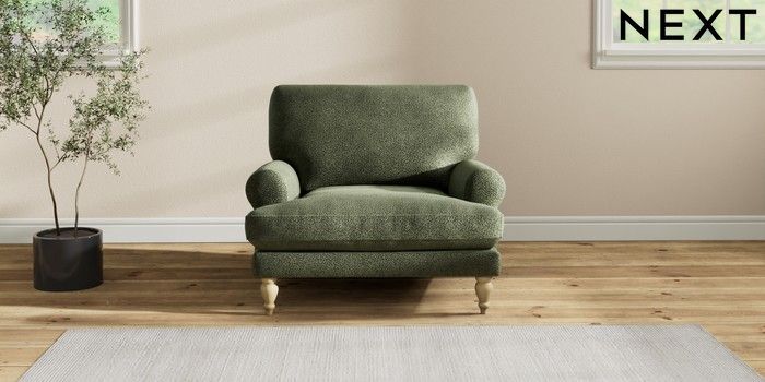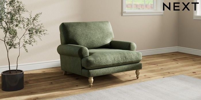 7.2.10 Erin Deep Relaxed Sit Armchair Boucle Chenille Dark Moss Green High Classic Turned - Light | Made Click here to use our website with more accessibility support, for example screen readers