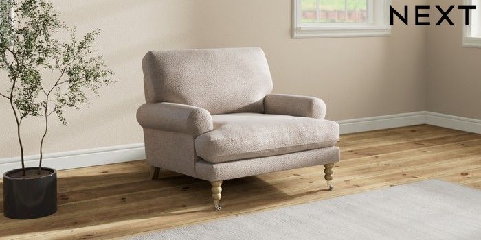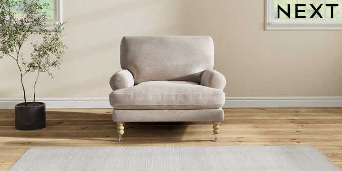 7.2.10 Erin Deep Relaxed Sit Armchair Boucle Chenille Light Natural High Classic Turned Chrome Castor - Light | Made Click here to use our website with more accessibility support, for example screen readers