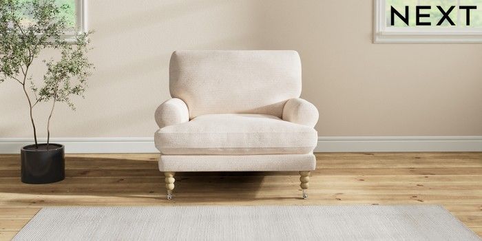 7.2.10 Erin Deep Relaxed Sit Armchair Boucle Chenille Oyster High Classic Turned Chrome Castor - Light | Made Click here to use our website with more accessibility support, for example screen readers