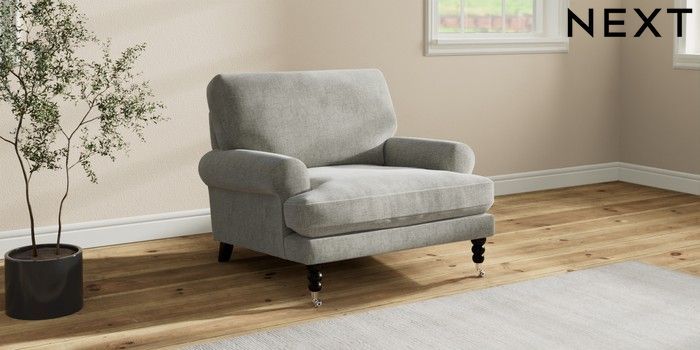 7.2.10 Erin Deep Relaxed Sit Armchair Chunky Chenille Light Grey High Classic Turned Chrome Castor - Dark | Made Click here to use our website with more accessibility support, for example screen readers