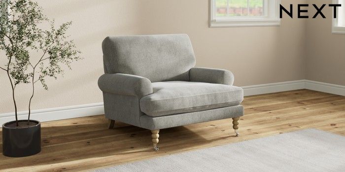 7.2.10 Erin Deep Relaxed Sit Armchair Chunky Chenille Light Grey High Classic Turned Chrome Castor - Light | Made Click here to use our website with more accessibility support, for example screen readers