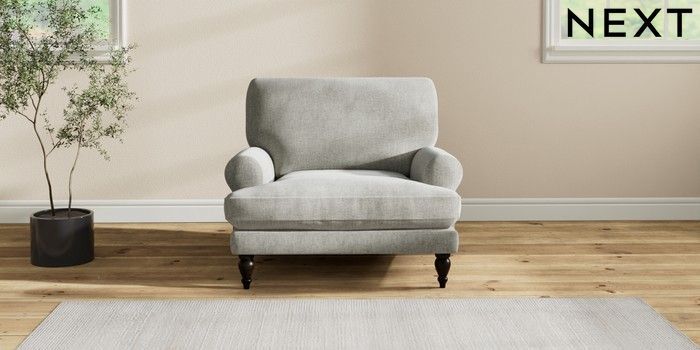 7.2.10 Erin Deep Relaxed Sit Armchair Chunky Chenille Light Grey High Classic Turned - Dark | Made Click here to use our website with more accessibility support, for example screen readers