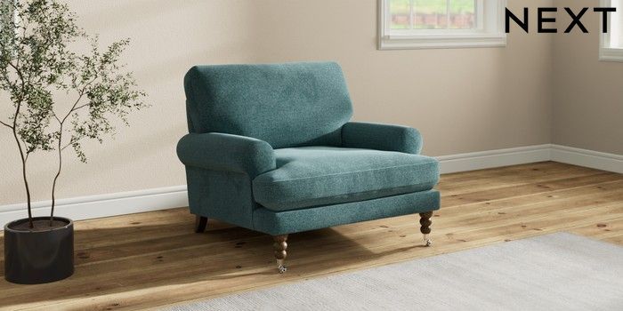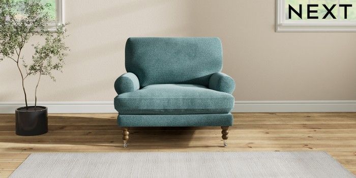 7.2.10 Erin Deep Relaxed Sit Armchair Chunky Chenille Mid Teal Green High Classic Turned Chrome Castor - Mid | Made Click here to use our website with more accessibility support, for example screen readers