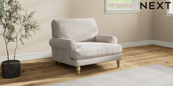 7.2.10 Erin Deep Relaxed Sit Armchair Chunky Chenille Oyster High Classic Turned - Light | Made Click here to use our website with more accessibility support, for example screen readers