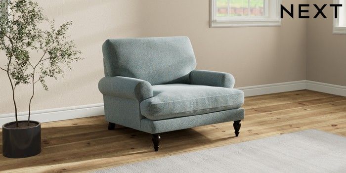 7.2.10 Erin Deep Relaxed Sit Armchair Chunky Marl Mid Blue High Classic Turned - Dark | Made Click here to use our website with more accessibility support, for example screen readers