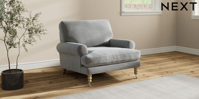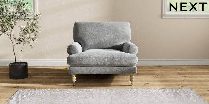 7.2.10 Erin Deep Relaxed Sit Armchair Chunky Marl Mid Grey High Classic Turned Chrome Castor - Light | Made Click here to use our website with more accessibility support, for example screen readers