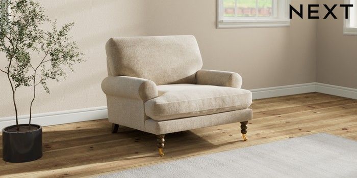7.2.10 Erin Deep Relaxed Sit Armchair Chunky Weave Cream High Classic Turned Brass Castor - Mid | Made Click here to use our website with more accessibility support, for example screen readers