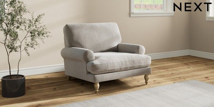 7.2.10 Erin Deep Relaxed Sit Armchair Chunky Weave Dove Grey High Classic Turned - Light | Made Click here to use our website with more accessibility support, for example screen readers