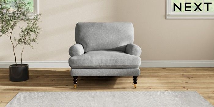 7.2.10 Erin Deep Relaxed Sit Armchair Chunky Weave Mid Grey High Classic Turned Brass Castor - Dark | Made Click here to use our website with more accessibility support, for example screen readers
