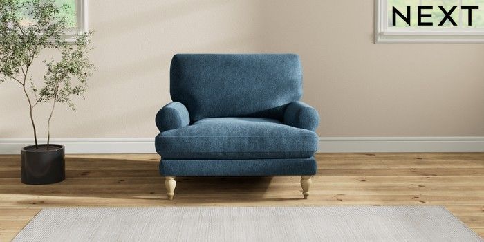 7.2.10 Erin Deep Relaxed Sit Armchair Cotswold Chenille Dark Blue High Classic Turned - Light | Made Click here to use our website with more accessibility support, for example screen readers