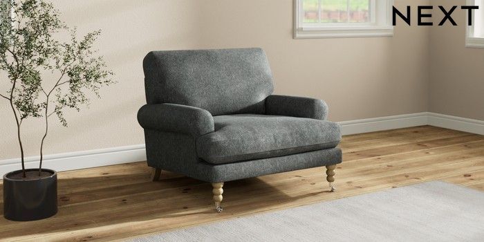 7.2.10 Erin Deep Relaxed Sit Armchair Cotswold Chenille Dark Grey High Classic Turned Chrome Castor - Light | Made Click here to use our website with more accessibility support, for example screen readers