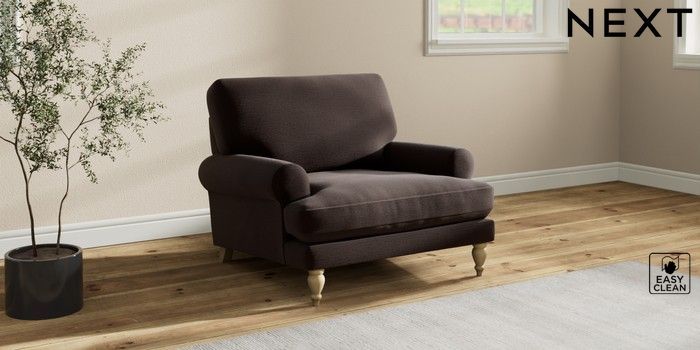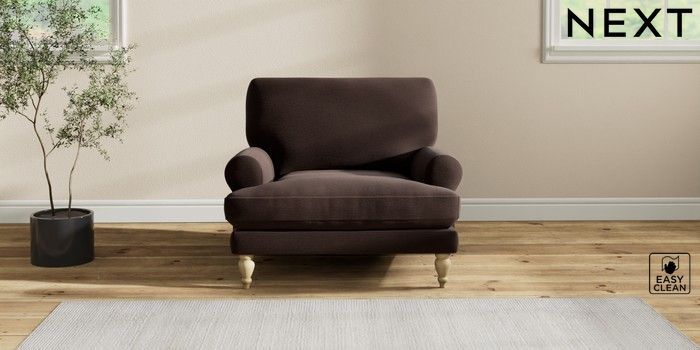 7.2.10 Erin Deep Relaxed Sit Armchair Fine Chenille Easy Clean Chocolate Brown High Classic Turned - Light | Made Click here to use our website with more accessibility support, for example screen readers