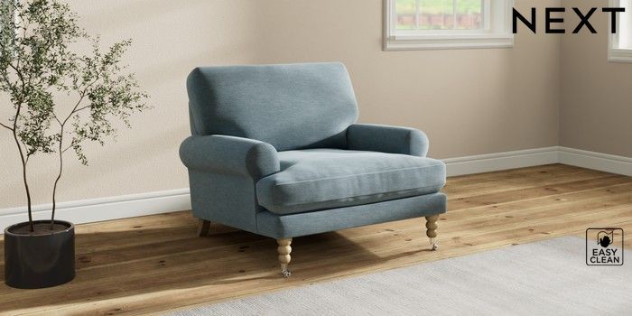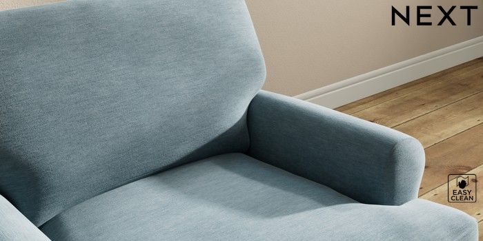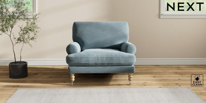 7.2.10 Erin Deep Relaxed Sit Armchair Fine Chenille Easy Clean Mid Blue High Classic Turned Chrome Castor - Light | Made Click here to use our website with more accessibility support, for example screen readers