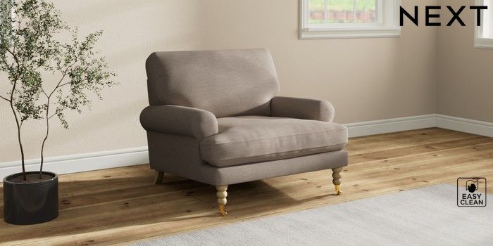 7.2.10 Erin Deep Relaxed Sit Armchair Fine Chenille Easy Clean Mid Taupe Brown High Classic Turned Brass Castor - Light | Made Click here to use our website with more accessibility support, for example screen readers