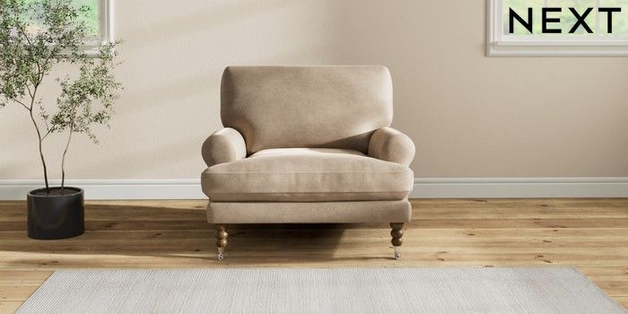 7.2.10 Erin Deep Relaxed Sit Armchair Luxe Chenille Mid Camel Beige High Classic Turned Chrome Castor - Mid | Made Click here to use our website with more accessibility support, for example screen readers