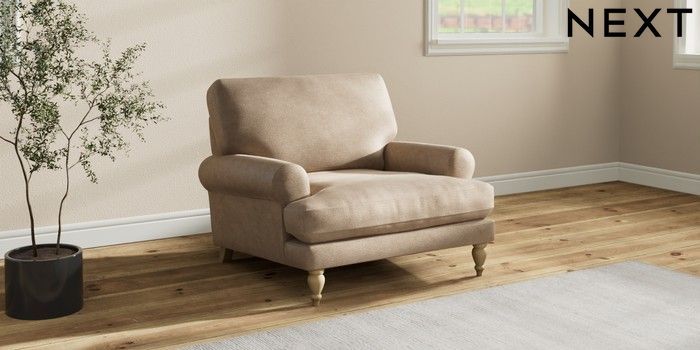 7.2.10 Erin Deep Relaxed Sit Armchair Luxe Chenille Mid Camel Beige High Classic Turned - Light | Made Click here to use our website with more accessibility support, for example screen readers