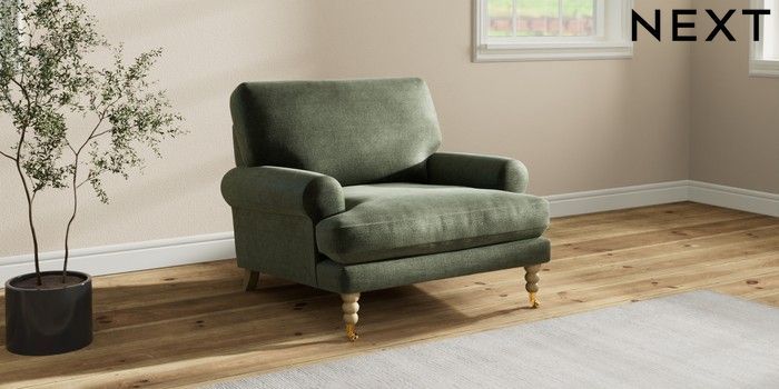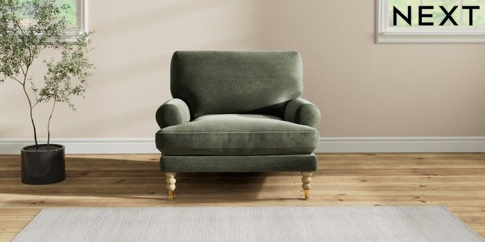 7.2.10 Erin Deep Relaxed Sit Armchair Luxe Chenille Mid Green High Classic Turned Brass Castor - Light | Made Click here to use our website with more accessibility support, for example screen readers