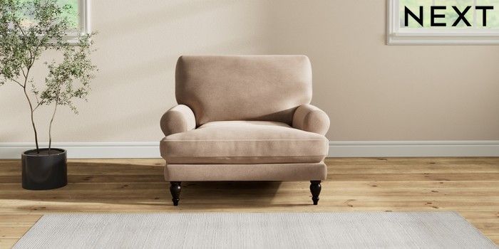7.2.10 Erin Deep Relaxed Sit Armchair Luxe Chenille Mid Natural High Classic Turned - Dark | Made Click here to use our website with more accessibility support, for example screen readers