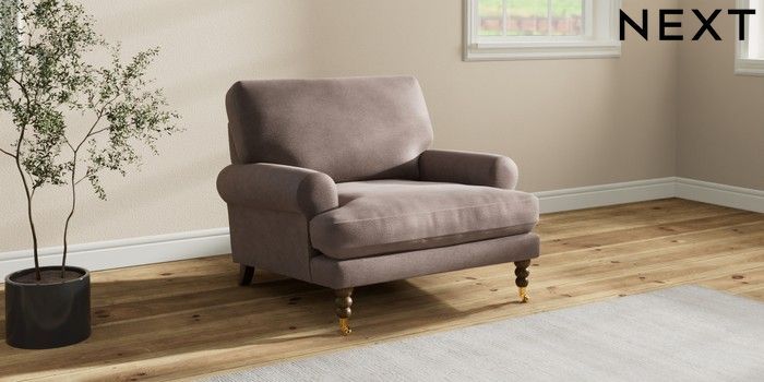 7.2.10 Erin Deep Relaxed Sit Armchair Luxe Chenille Mink Brown High Classic Turned Brass Castor - Mid | Made Click here to use our website with more accessibility support, for example screen readers