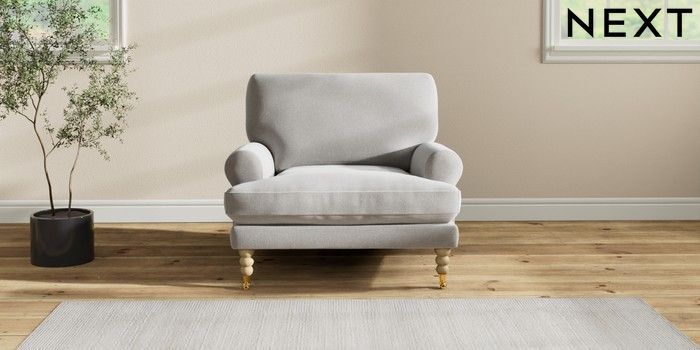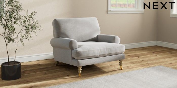 7.2.10 Erin Deep Relaxed Sit Armchair Natural Mix Light Grey High Classic Turned Brass Castor - Light | Made Click here to use our website with more accessibility support, for example screen readers