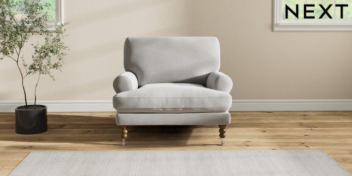 7.2.10 Erin Deep Relaxed Sit Armchair Natural Mix Light Grey High Classic Turned Chrome Castor - Mid | Made Click here to use our website with more accessibility support, for example screen readers