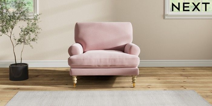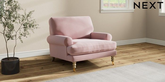7.2.10 Erin Deep Relaxed Sit Armchair Natural Mix Light Rose Pink High Classic Turned Brass Castor - Light | Made Click here to use our website with more accessibility support, for example screen readers