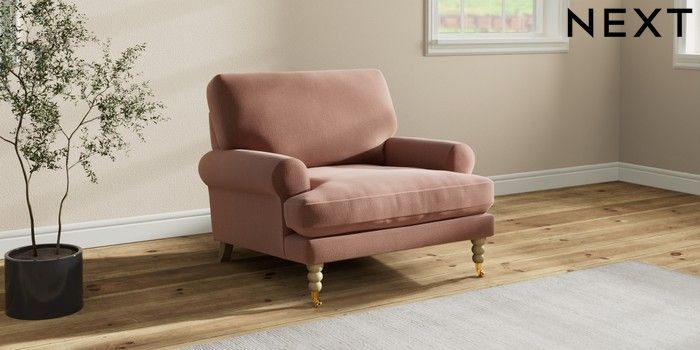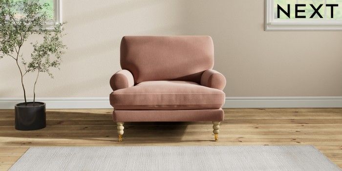 7.2.10 Erin Deep Relaxed Sit Armchair Relaxed Linen Look Light Rust Brown High Classic Turned Brass Castor - Light | Made Click here to use our website with more accessibility support, for example screen readers