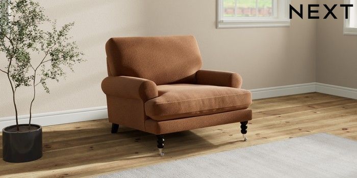 7.2.10 Erin Deep Relaxed Sit Armchair Ripple Chenille Mid Rust Brown High Classic Turned Chrome Castor - Dark | Made Click here to use our website with more accessibility support, for example screen readers