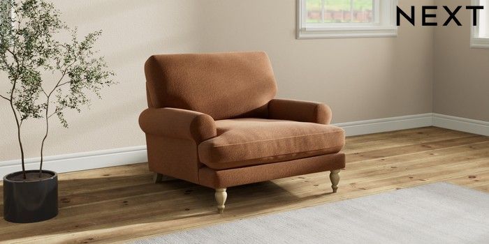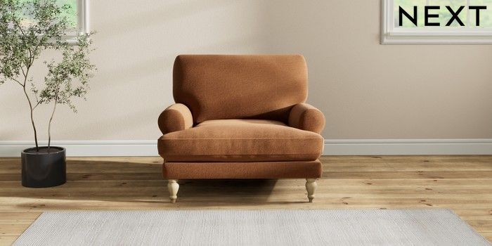 7.2.10 Erin Deep Relaxed Sit Armchair Ripple Chenille Mid Rust Brown High Classic Turned - Light | Made Click here to use our website with more accessibility support, for example screen readers