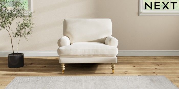 7.2.10 Erin Deep Relaxed Sit Armchair Ripple Chenille Oyster High Classic Turned Brass Castor - Light | Made Click here to use our website with more accessibility support, for example screen readers