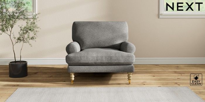 7.2.10 Erin Deep Relaxed Sit Armchair Tweedy Blend Easy Clean Dark Grey High Classic Turned Brass Castor - Light | Made Click here to use our website with more accessibility support, for example screen readers