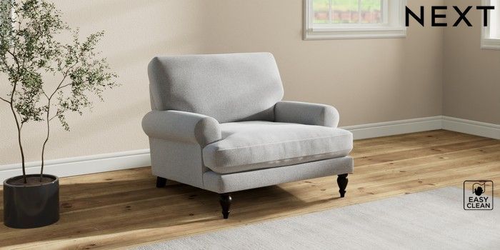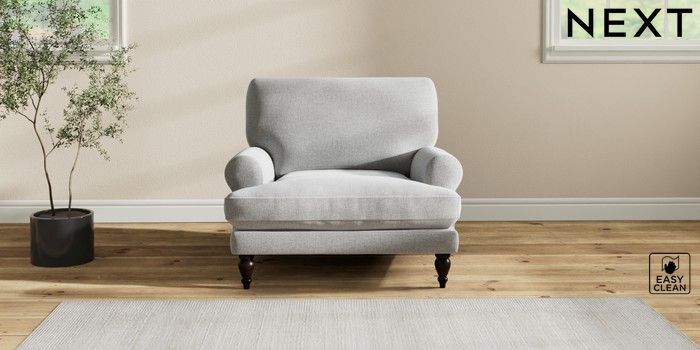 7.2.10 Erin Deep Relaxed Sit Armchair Tweedy Blend Easy Clean Light Silver Grey High Classic Turned - Dark | Made Click here to use our website with more accessibility support, for example screen readers